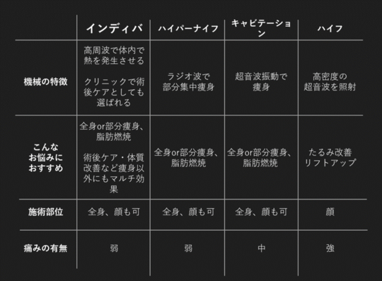 痩身マシーンを使ったメニューも、マニュアル通りではなく個人の状態にあわせた施術をしてくれるかをチェックしてみてください。